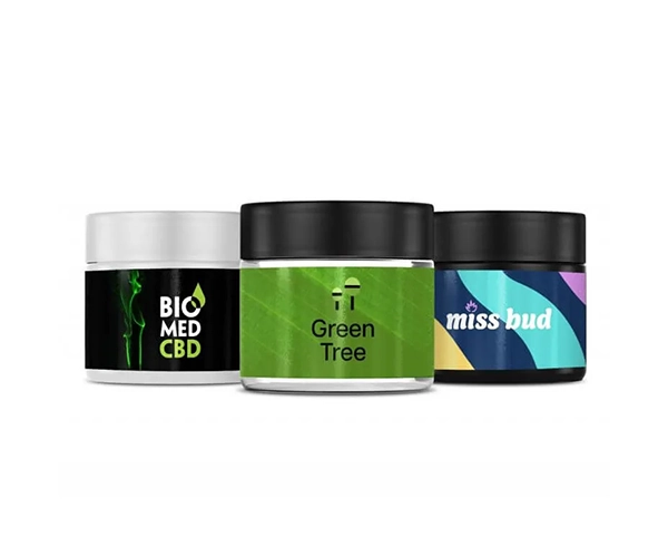 - Glass CBD Jars: The material maintains durability while staying free of chemicals and it presents an elegant luxurious design.